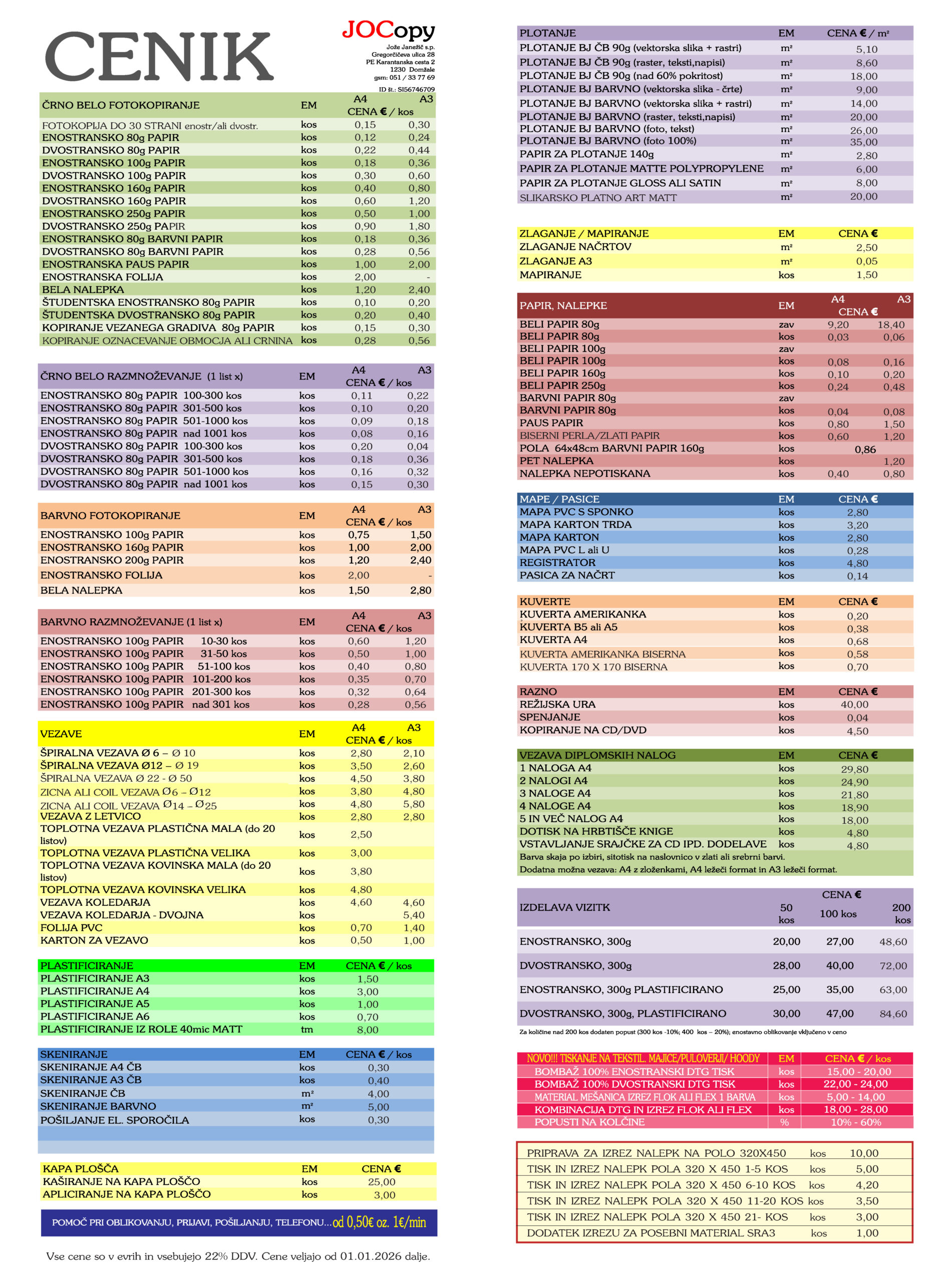 Za prenos cenika Januar 2026 klikni na spodnji gumb.
